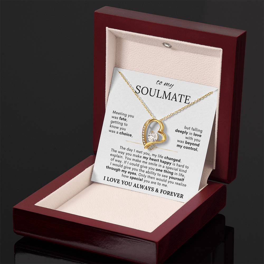 To My Soulmate – Meeting You Was Fate Heart Necklace with Message Card